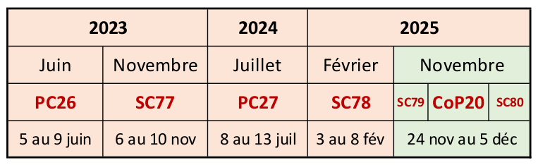 Calendrier des Comités et Conférence des Parties CITES